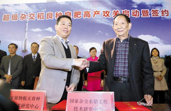 21日,由袁隆平领衔的国家杂交水稻工程技术研究中心与华南农业大学国家植物航天育种工程技术研究中心签署战略合作协议,双方计划通过“强强杂交”的水稻新品种,在广东潮汕地区的高产田内创造亩产1500公斤的世界水稻亩产的最高纪录。