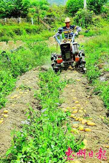 田里产出的粮食仅能维持一家的口粮,平时一家子的生活开销、买化肥的钱从两造稻子里挣不到,“穷得没办法了,就整天琢磨着怎样从田里多挣钱。”张勇球挠挠头说,看到相邻的惠东冬种马铃薯搞得红红火火,有了样板,张勇球就跟村里的伙伴合计,也要种马铃薯,让农闲地忙起来。
