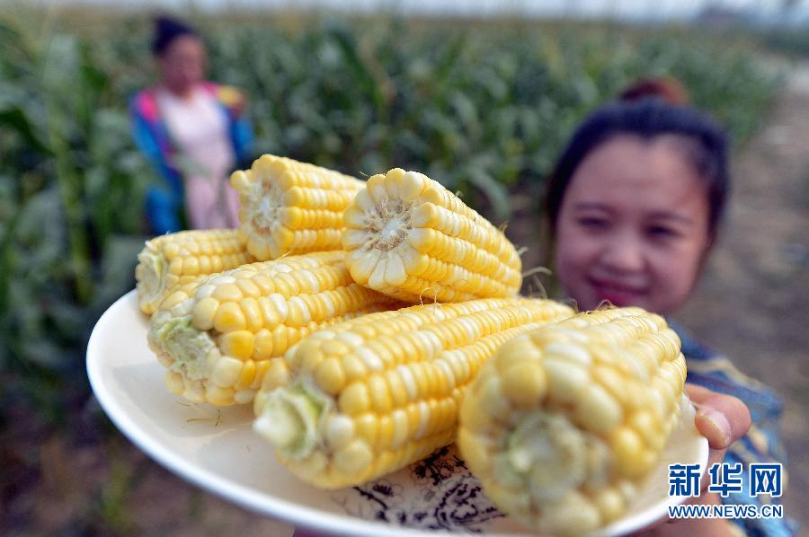 目前,当地出产的水果玉米已经开始采摘上市,供应河北、北京等地的“双节”市场。(郑勇 摄)