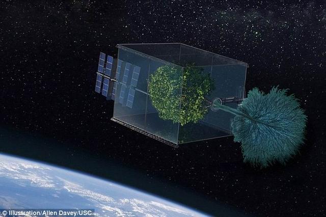 如图所示,这是科学家提议的“太空育树计划”的模拟图,暗示着使用活细胞成长为太空飞船的独立部件。