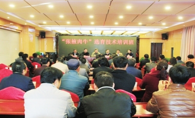 为做好“张掖肉牛”繁育中心建设及“张掖肉牛”选育工作,3月中旬,甘肃省张掖市畜牧兽医局举办了“张掖肉牛”选育技术培训班。“张掖肉牛”繁育中心技术攻关小组成员,“张掖肉牛”核心选育群及核心育种群相关企业负责人、技术员,及企业所在地乡镇畜牧兽医站负责人共60多人参加了培训。该培训班邀请到中国农科院北京畜牧兽医研究所肉牛遗传育种研究室主任、研究员李俊雅,西北农林科技大学动科院副院长、教授昝林森和张掖市畜牧兽医局副总工程师、研究员杨瑞基授课。三位专家分别以肉牛选育技术与新品种培育、我国肉牛产业发展现状及肉牛改良应注意的技术环节和张掖肉牛的培育历史和发展方向为题,重点就肉牛生产性能测定与外貌评定、肉牛选育技术、“张掖肉牛”高效生态养殖技术、“张掖肉牛”选育档案建立等内容对参训人员进行了培训。
