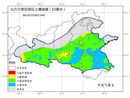 28日14时土壤墒情监测表明:冬麦区土壤墒情较25日有明显改善,缺墒区范围缩小,仅河北东南部、河南西部等地的部分地区0~20厘米土壤存在缺墒现象。河南中东部、山东南部、江苏北部等地部分地区浅层土壤水分充足。