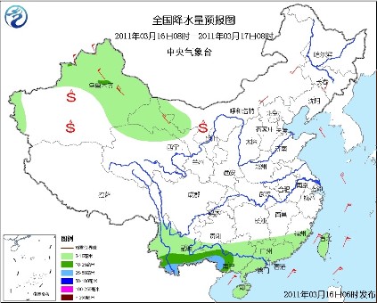 前两天影响到我们国家的冷空气今天是强弩之末,今天只有华南云南等地还有继续降水的可能性,全国其他大部分地区都是以晴为主。不过一股新的冷空气将再来影响我国,受其影响新疆北部会有中到大雪飘落,同时这一带的气温也将会有所下降。