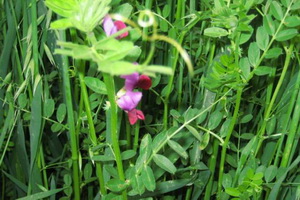 燕麦与一年生豆科牧草(箭筈豌豆、毛苕子或豌豆)混播。
