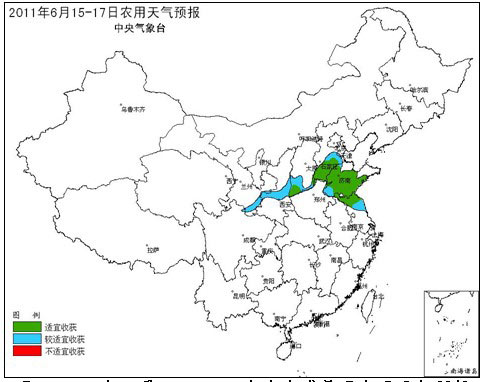 2011年6月15~17日冬小麦成熟区农用天气预报