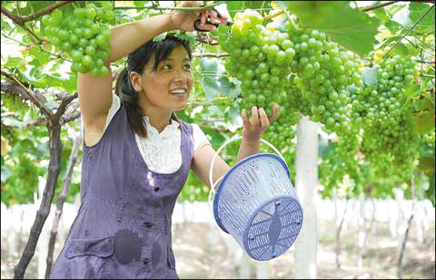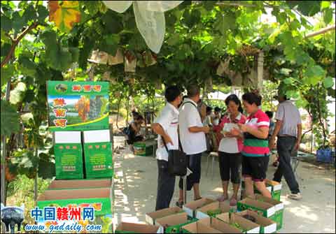 在余江县康丰葡萄实业有限公司,上千亩葡萄园硕果累累,青翠欲滴。公司负责人告诉记者,去年遭受特大洪涝灾害,葡萄园损失严重,在当地政府和有关部门的大力支持下,公司贷款500万元,共投资800余万元搭建了不锈钢防雨棚,确保了果树在开花结果期不受天气影响而减产,并且起到了防虫防鸟的效果。预计今年亩产3000公斤,每吨售价可达1.6万元。