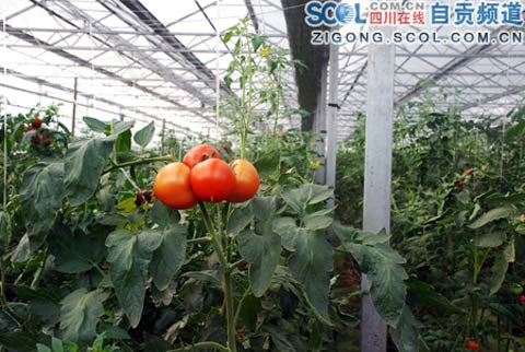 一进入富顺县富世镇海棠村,一大片一大片整齐划一的蔬菜大棚扯人眼球。更令人惊奇的是,在这土地都快干得冒烟的伏旱夏日,棚里的蔬菜生机盎然,西红柿果大色鲜,辣椒青翠欲滴,葡萄苗郁郁葱葱……而大棚外土里裸露的蔬菜和其他农作物早已在烈日下奄奄一息。