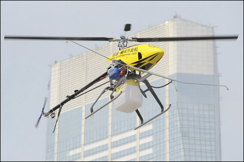 据了解,该机在GPS控制模式下,最大飞行速度为每小时52公里,带GPS模块、高精度姿态传感器,可实现自动增稳、漂移校、自动巡航等功能,主要用于高空喷洒农药等植保作业。
