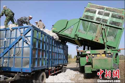 目前,新疆机采棉面积已经达到400万亩。除了新疆兵团外,其它地方的棉花机械化采收面积今年超过50万亩,是上年的10倍以上。今年,新疆专门划拨资金用于国产采棉机的补贴,每台补贴20万元,进一步调动农民购置采棉机的积极性。部分棉花主产县市财政还专门拿出资金投资改造原有轧花厂,增加生产加工线,满足机采棉的后续加工。
