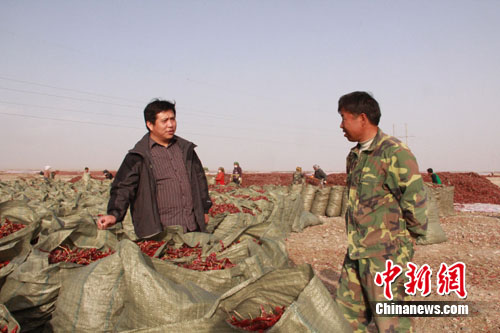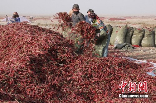 二十二团副团长王雷对记者说。他介绍,该团自2007年开始大规模种植辣椒,目前种植面积为4.5万亩,是南疆地区最大的辣椒生产基地。现在,团里正在积极寻找内地投资商,希望弥补下游产业链的空白,从而提高产品的附加值(作者 刘辰瑶 吴洋)
