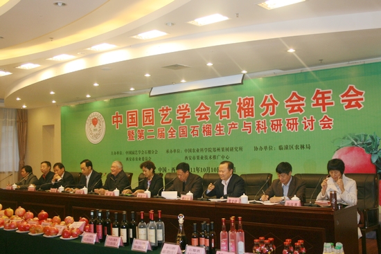 由中国农业科学院郑州果树研究所承办的“中国园艺学会石榴分会年会暨第二届全国石榴生产与科研研讨会”于10月11-12日在西安召开。郑州果树所副所长李松章致开幕词。中国园艺学会荣誉理事长朱德蔚、西安市农委副主任苏新耀、陕西省果业局总农艺师陈陵江分别讲话。国内外90余名从事科研、教学、生产、销售的人员参加会议。分会常务副理事长曹尚银主持开幕式。