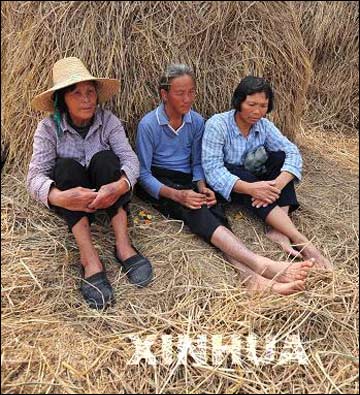 11月30日,在广西南宁市那洪街道办罗村晒谷场,晚稻大幅减产令村民一筹莫展。