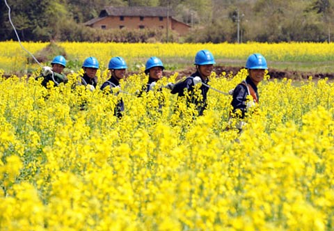 自2010年至今,江西靖安县供电部门投入5000万元对全县全面进行农网改造升级,以提高农网供电的可靠率及安全运行质量,服务“三农”。新华社记者 宋振平 摄