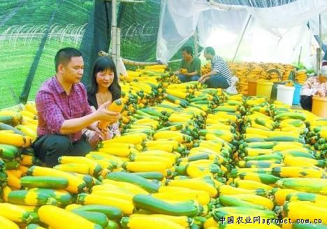今年春季,荔浦县东昌镇农户试种从国家蔬菜工程技术中心引进的南瓜改良新品种———香蕉西葫芦。近日,70余亩香蕉西葫芦大获丰收,亩产量近4500公斤,售价每公斤3-4元,成为农民增收的新渠道。(编辑:牛璐)
