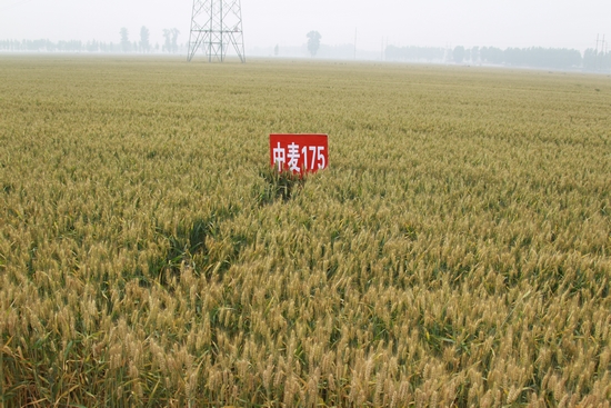 中麦175由依托中国农业科学院的国家小麦改良中心培育的高产、广适、优质面条小麦新品种,已于2008年和2011年分别通过国家北部冬麦区和黄淮旱肥地审定,还通过了北京、山西、河北、甘肃和青海的品种审定,它有三大突出特点。一是产量高而稳,在高水肥条件下,大面积容易达到亩产550公斤的高产目标,不少地块超过600公斤。2005-2007年在河北徐水保定农场试种100亩,连续三年亩产皆超过550公斤。2008年在北京市房山区琉璃河镇200亩,实收611公斤/亩,创北部冬麦区高产记录。2009年香河县刘宋镇100亩,专家测产574公斤/亩。2011年天津武清区的100亩高产攻关田亩产达580公斤,为天津市当年最高记录。二是抗性强,节水性能突出,适应性广。抗倒伏,高抗条锈病,中抗白粉病,灌浆速度快,落黄好,种植地区覆盖三个麦区,已成为北部冬麦区的主栽品种。其抗寒性居目前北部冬麦区推广品种的前列,作为冬麦西延的主要品种在甘肃和青海大面积推广,产量比春麦高20%,且早熟7-10天;既高产又节水,在河南、山西和陕西等旱肥地表现突出,大面积示范亩产400-500公斤。三是品质优,白粒,饱满度好,面粉白度好,面条品质优良,口感、颜色和粘弹性均好,优于著名的面条专用粉照雪花粉。