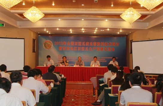 6月13-16日,由中国农业科学院植物保护研究所、中国农业科学院郑州果树研究所等单位主办的“2012年全国西甜瓜病虫害防控技术研讨暨西南地区西甜瓜生产观摩交流会”在成都召开。会议由国家西甜瓜产业技术体系病虫害防控研究室主任赵廷昌研究员主持,来自全国的80余名代表参加了会议。