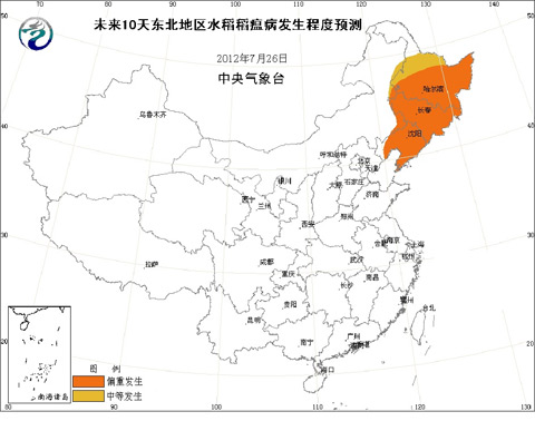注:稻瘟病是水稻主要流行性病害之一,以抽穗扬花期发病对水稻产量影响最大。东北地区水稻目前普遍处于孕穗期,8月上旬将大面积进入抽穗扬花期。