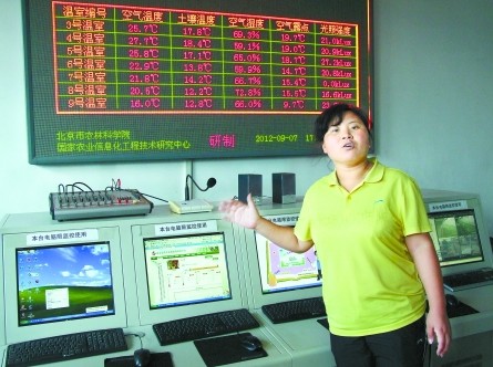 “这是物联网技术,比数字化农业又提升了一个档次。”金福艺农农业部副经理、中国农大博士孙锐告诉记者,所谓的农业物联网技术,就是通过传感器等来收集各种数据传输到监控中心,监控各种环境指标,创造最适宜农作物生长条件的一项技术。比如日光温室内温度过高,监控终端会语音提示打开风口开关降温。若温度过低,就会提示合上卷帘、关闭风口。通过音响给植物播放适宜的音乐,促其提高产量、品质。