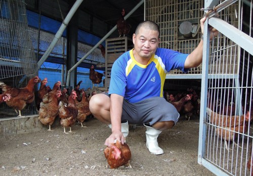魏趋鼎以玉米、黄豆等素食养鸡,开创健康鸡肉商机。 图片来源:台湾《联合报》