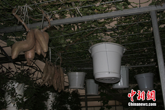 4号温室大棚以无土栽培技术为主,内设有墙面栽培及生态小屋、空中槽式栽培草莓或人参果、管道式花生空中栽培、太空蔬菜栽培、庭院农业和家庭阳台农业等,尤其令人惊奇的是红薯空中结薯、番茄树、巨人南瓜等。充分展示了蔬菜单株高产的潜力和新的理念。
