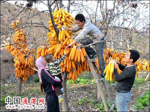 时下,行走在甘肃省定西市通渭县的庄头村尾,你都会被金灿灿的一米棒子所吸引。树上挂的、墙上架的、院子里晒的、庄前屋后堆的、架子上垂的……一串串、一簇簇、一垛垛,将冬日的山庄打扮的异常漂亮。老百姓因种植全膜玉米,生活也乐开了花。