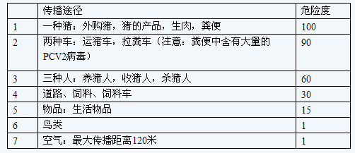 疫病从场外到场内传播途径风险度分析如下表: