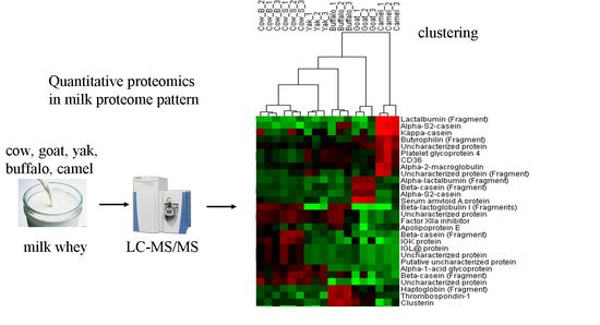 为了从生物学角度阐明奶牛、牦牛、水牛、山羊和骆驼奶类的蛋白差异,该团队采用蛋白质组学技术定量了这5个物种的乳清蛋白质组,鉴定了211种乳蛋白,对113个鉴定蛋白的分子功能、细胞组分和生物学过程进行了归类,在国际上首次构建了乳清蛋白定量差异表达谱,揭示了奶牛、牦牛、水牛、山羊和骆驼奶类中存在的特征性蛋白分子。根据该研究成果撰写的论文《奶牛、牦牛、水牛、山羊和骆驼奶乳清蛋白定量差异表达蛋白组学研究》已发表在国际知名学术期刊《蛋白质组学研究杂志(Journal of Proteome Research)》上。