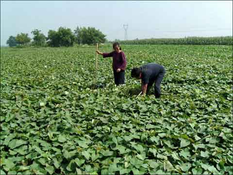 一是追肥提苗。栽后7~10天中耕,亩用人畜粪水20~30担对碳铵10~15公斤或尿素5公斤(最好用40%高效复合肥7~10公斤)灌塘;同时,亩用草木灰100~150公斤混合过磷酸钙25~30公斤施于塘间,不要施在塘内(底肥用了高效复合肥的只用人畜粪水提苗);藤叶封垄时,亩用21.8%的硫酸锌0.5公斤或复合锌肥0.8公斤对水50公斤叶面喷雾;10月上旬,亩用磷酸二氢钾100克、尿素150克,对水50公斤叶面喷雾2~3次。