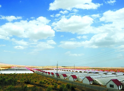 荒漠化治理是一个世界性的重大课题,尤其对甘肃省河西走廊的绿洲农业来说更是如此。早在 1984年,我国著名科学家钱学森就提出了第六次产业革命理论,其中明确论述了沙产业这一概念,这为解决荒漠化问题、保障我国粮食安全开拓了具有创新性新思路。其后,甘肃省河西走廊率先实践这一理论,并最早在山丹建成了300多个塑料大棚,由此拉开了设施农业大幕。此后20多年间,经过广大干部群众的探索实践和辛勤努力,在干旱的河西走廊上建成了一片片规模巨大的新绿洲,使沙产业呈现出方兴未艾的良好态势,并点染出令世人瞩目的绿色希望。