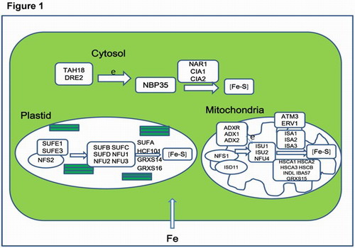 铁硫蛋白在植物、动物、微生物中广泛存在,其作为一种重要的电子载体在生命活动中起着重要的作用。铁硫蛋白的合成主要在细胞的叶绿体、线粒体和细胞质,模式植物拟南芥铁硫蛋白的合成研究较为广泛,需要40多个基因的共同参与完成其合成过程,而对于其他植物,尤其是作物中铁硫蛋白的研究较少。