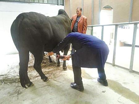 近日,在地处鄞州瞻岐的北沙牛保种场,我市北沙牛育种科技创新团队首次实现北沙牛人工取精。“人工取精是扩繁的第一步,这标志着濒临灭绝的地方畜禽良种北沙牛保种工作取得阶段性成果。”市畜牧兽医局副局长孙泽祥说,此次取得的冻精,计划下月在项目合作单位浙江大学专家指导下实施人工授精。