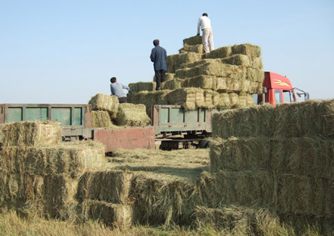 牧草打捆后运走储藏(资料图片)