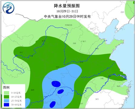 预计10月29日至31日,北方冬麦区自西向东出现小到中雨天气,局地将有大雨。西北地区东南部、华北南部、黄淮、江淮等地累计降水量有3~10毫米,其中,陕西南部、河南西部和中部的局部地区累计降雨量有15~30毫米。