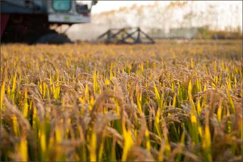 江苏省秋收临近尾声,沭阳、太仓、宝应等县市粳米丰收在望,田地里纷纷披上金色。2013年江苏秋粮收购总量略增,预计全年粮食生产将实现“十连增”。新华社发(李响摄)