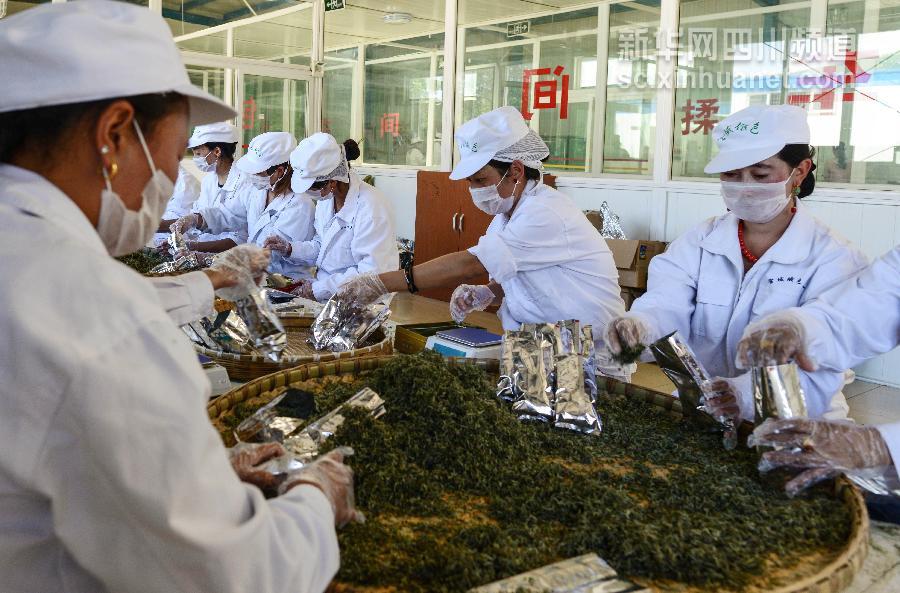 8月20日,雪域俄色茶厂工作人员在包装茶叶(新华社记者 江宏景 摄)