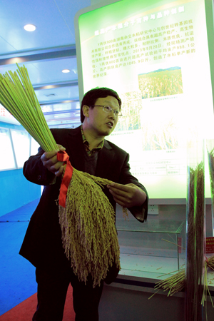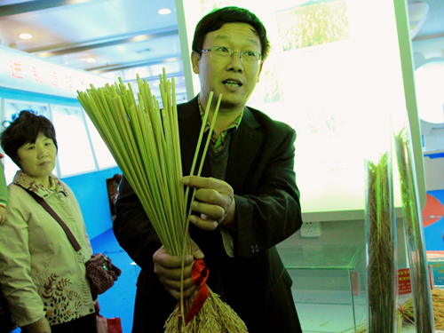 【科学网 成舸 通讯员 郭媛报道】11月10日,国家“863计划”重大成果巡回展第二站在长沙举行,不久前在湖南省隆回县创下百亩片亩产988.1公斤记录的超级杂交稻“冠军组合”——“Y两优900”首次公开亮相,与数万观众近距离接触。