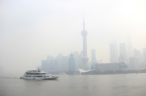 12月3日上海继续受到雾霾天气影响(图片来源:新华网)