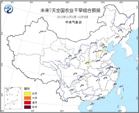 另外,12月2日全国农业干旱综合监测结果表明:陕西关中东部、山西南部、河北中南部的部分地区存在轻度农业干旱,全国其余农区基本无旱情。