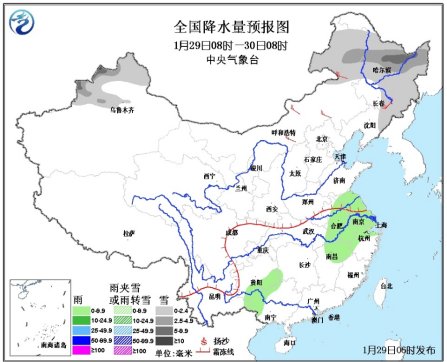 中国兴农网讯 29日,北方大部地区有大风降温天气,降温幅度为4~8℃,局地10℃左右;内蒙古中东部、东北地区等地有4~6级风。新疆西北部、内蒙古东北部、东北中北部等地有小到中雪,其中,新疆伊犁河谷、塔城地区、黑龙江中部等地的部分地区有大雪,局地暴雪;江淮中东部、江南东北部等地有小雨或阵雨。