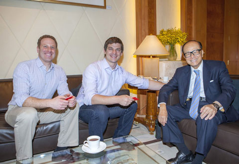 Hampton Creek 食品公司的创始人兼CEO Josh Tetrick (下图中) 和Joshua Balk (下图左) 本周一到香港拜会了李嘉诚本人。