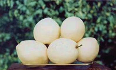 产量表现:果实大型,平均单果重 250克,最大果重 600克。经过近 8年的多点观察试验,结果表明:该新品种果实外观美、品质优、晚熟、极耐贮;且早果、丰产、抗病,易于商品化栽培,综合性状均已超过了“鸭梨”和“酥梨”,是一个具有发展潜力的优良、晚熟、耐贮藏的梨新品种。