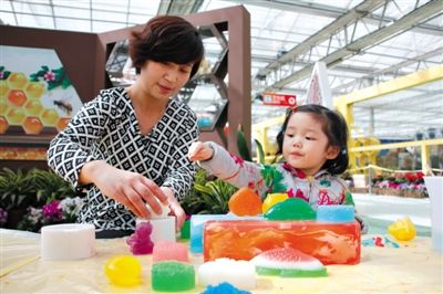 一市民和孩子动手制作的蜂皂。 通讯员 王红 摄