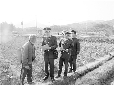 当前正值春耕播种农忙时节,为服务辖区农民春耕生产,力保农民春耕生产安全,近日,武警福建宁德下浒边防所组织官兵深入辖区田间地头开展“法律维权进农田”宣传活动。(孟翔宇 摄影报道 科技日报)