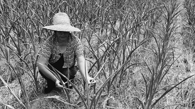 28日,河南省温县温泉镇东梁所村村民在一块受旱的玉米田里查看苗情。徐宏星摄(人民视觉)
