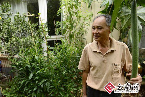 丝瓜一般只有30厘米左右,长一些的也不会超过1米。而昆明64岁的飞行员史念和老先生却种出了巨无霸“丝瓜王”,一夜能疯长10厘米,记者一量,有1.85米长!史先生说:“这个长丝瓜还会长呢!说不定过几天,比现在还长。”据了解,史念和是东航的一名退休飞行员,他闲下来就在自家小院里种许多的瓜果蔬菜,没想到今年的丝瓜长势特别好,这根“丝瓜王”20天长到1.85米,他觉得很是稀奇,所以致电跟读者分享他的这份快乐。