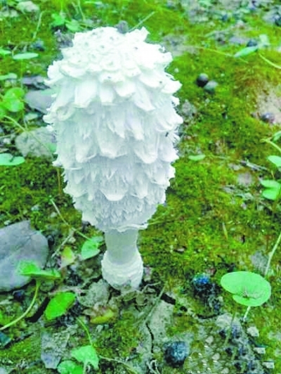 @白马啸西风V武汉:汉口江滩,发现了一棵雪白的蘑菇,层层鳞甲,宛若石膏凝铸,如此冰雪洁白,是否有毒?只可远观而不可亵玩焉!@武汉晚报