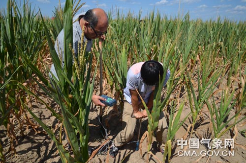 7月下旬以来,吉林省降水比常年同期偏少,目前全省大部分玉米进入灌浆期,连续的少雨天气导致中西部部分地区土壤墒情下降,出现不同程度的干旱。近日,吉林省气象局减灾处组织成立了由该省气象台、省农业气象与遥感中心、省气象服务中心和省人工影响天气中心等单位业务人员组成的联合农情调查组。8月4日至6日,调查组先后来到农安县、长岭县、双辽市、辽河垦区和永吉县的十二处玉米作物地块,联合县市气象局对吉林省中西部地区发生的旱情进行实地调查。