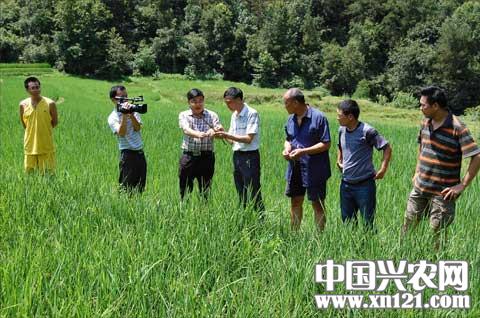 中国兴农网讯,7月31日,巴东县农业局组织植保专家来到金果坪乡,检查督办水稻稻飞虱和稻纵卷叶螟的统防统治工作。