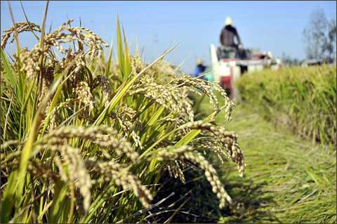 近日,山东省郯城县农民在复耕村庄宅基地上种植的5000余亩水稻喜获丰收,预计平均亩产500公斤。近年来,郯城县实施“改善农民居住环境,增加农田耕种面积”的利民富民工程,兴建新农村社区19个,复耕村庄土地5140亩。(房德华 新华社)