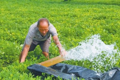 7月28日,安阳市内黄县城关镇丁庄村农民在花生地浇水抗旱。(高志强 摄影)